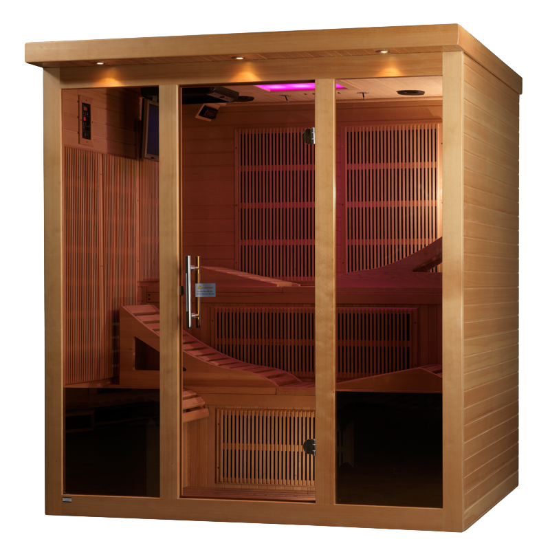 Infrared Sauna advanced Jacuzzi is built with premium eucalyptus. Eucalyptus is used because of its natural qualities and its ability to maintain its structure and shape even in high temperatures and humidity. There is room enough in the sauna so you can share it with your loved one.